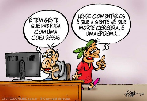 É como sugere a charge, “lendo comentários nas redes sociais é que a gente percebe que a morte cerebral virou epidemia”.