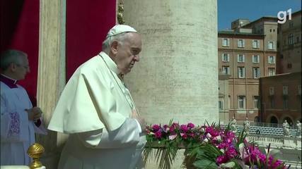 Pontífice falou de guerra “cruel e sem sentido” para 50 mil pessoas na Praça São Pedro. Foi a primeira vez, desde 2019, que missa ocorreu com público