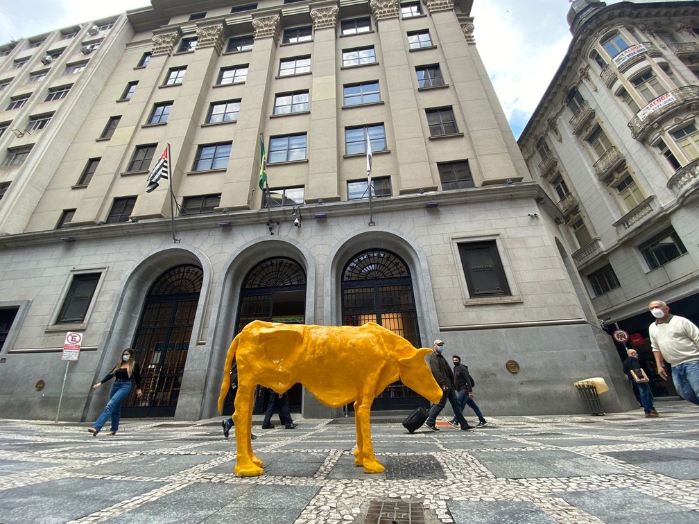 `Vaca magra´ é instalada em frente à Bolsa de Valores, no Centro de SP