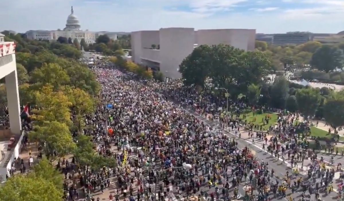 Em Nova York, os organizadores calculam que são mais de 100 mil manifestantes, que lotaram mais de 40 quarteirões numa das principais avenidas da cidade. E no estado de Nova York como um todo, além daqui, tem mais de 100 cidades com protestos.